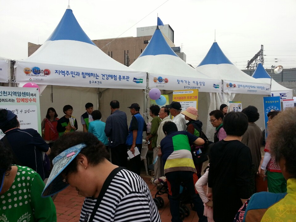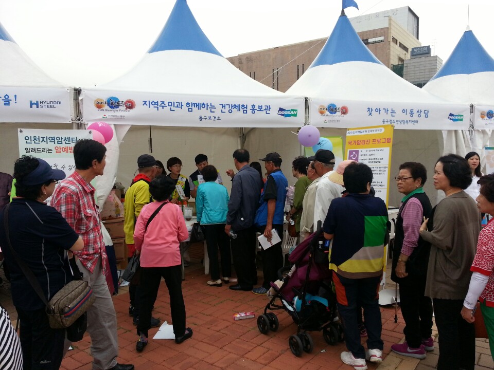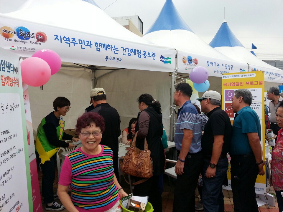9월 26일 인천광역시 동구에서 개최 된 '화도진 축제'에 참여하여 지역 주민들을 대상으로 암예방 및 검진에 대한 홍보를 하였습니다.