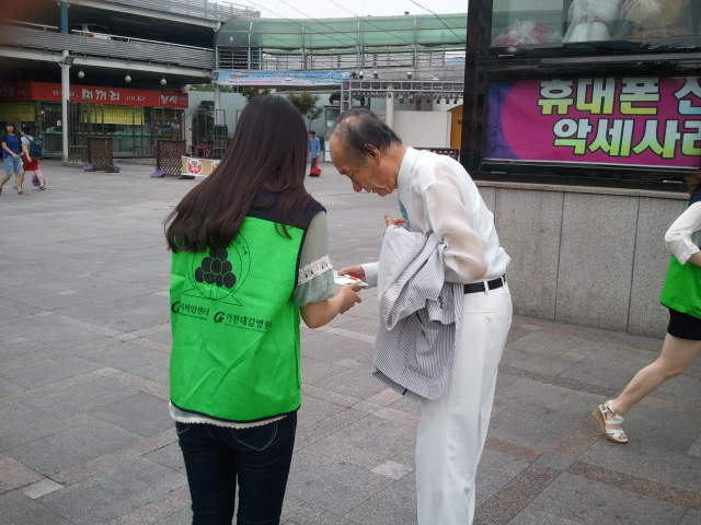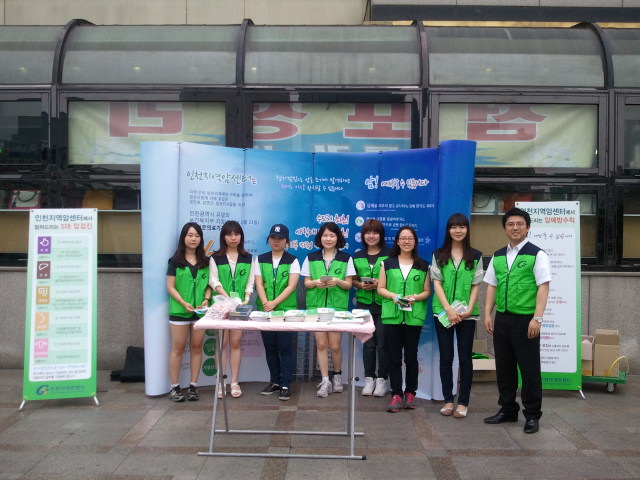 2012년 6월 29일(금) 암예방 서포터즈와 인천 부평역사에서 인천지역 주민들을 대상으로 암예방과 검진에 대하여 홍보하였습니다.